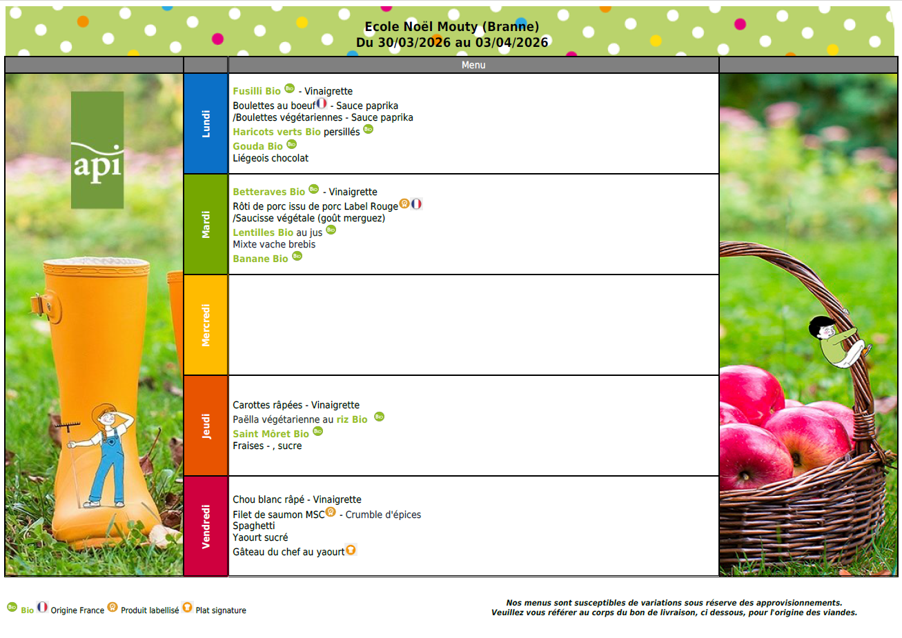 Possibilité d'inscription les mercredis en demi-journée (repas inclus) sur demande.
